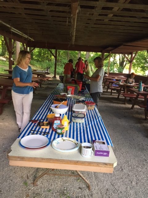 This August Avon Trail gathering has often occurred at the farm of Ross and Dorothy Campbell. This venue needed to change since the Campbells have retired from the farm and moved to Tavistock. The sailing club grounds provide a view of the lake from the east. A very spacious covered picnic and BBQ facility was reserved by Jane for this event.