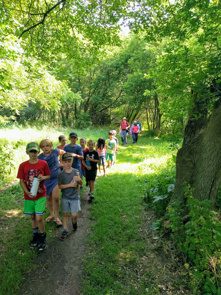 The weather was perfect with a breeze on Friday August 9. This marked the 2nd Avon Trail hike led hike for the YMCA this summer. There were 13 kids and two Summer Y Leaders, different leaders than the previous hike also led by Avon Trail. Two of the kids had attended the previous hike. (All the kids wore sneakers…yah!).
