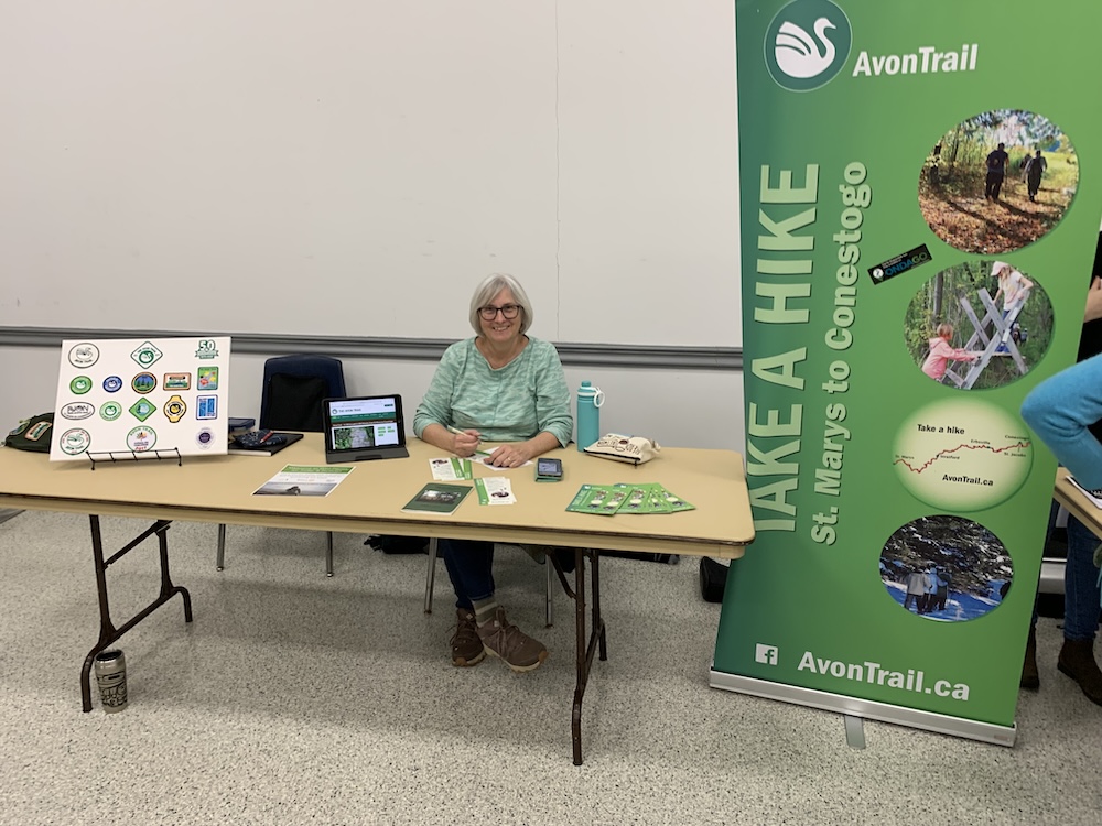 Cindy represented Avon Trail throughout the 3-hour event, meeting with many visitors curious about the trail. She directed them to the trail maps available on the Avon Trail website (avontrail.ca), where they can purchase downloadable maps to print at home. Alternatively, visitors can download the free ONDAGO app to access all Avon Trail maps online, including both the main trail and side trails.